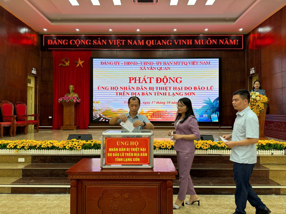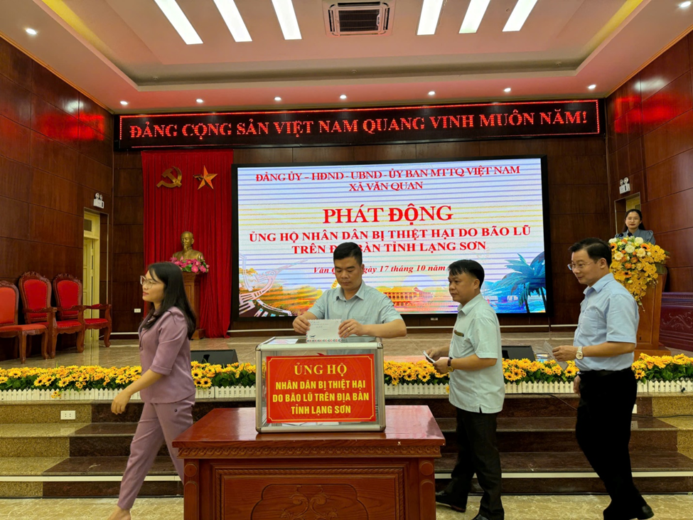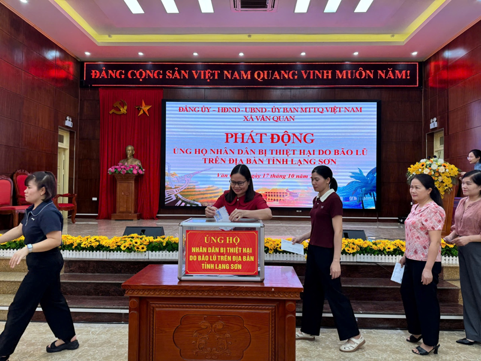 Chiều ngày 17/10/2025, Ủy ban Mặt trận Tổ quốc Việt Nam xã Văn Quan đã tổ chức phát động đợt quyên góp, ủng hộ nhân dân các địa phương trong tỉnh bị thiệt hại do bão, lũ gây ra.