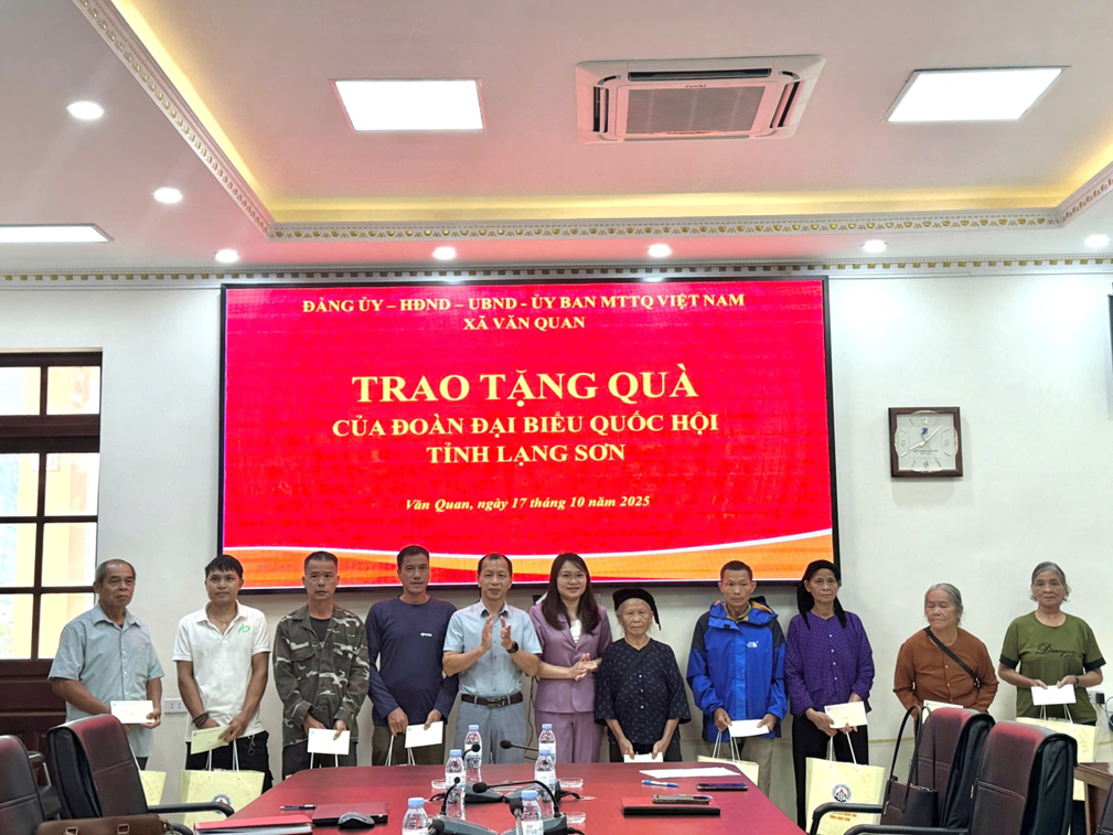 Tuy nhiên, do ảnh hưởng của cơn bão số 11, chương trình tiếp xúc cử tri trực tiếp không thể tổ chức như kế hoạch. Nhằm kịp thời thăm hỏi, chia sẻ và động viên các hộ gia đình có hoàn cảnh khó khăn, Đoàn Đại biểu Quốc hội tỉnh Lạng Sơn đã ủy quyền cho Ủy ban Mặt trận Tổ quốc Việt Nam xã Văn Quan tổ chức trao tặng 15 suất quà cho các hộ nghèo, cận nghèo và hộ có hoàn cảnh đặc biệt khó khăn trên địa bàn xã vào ngày 17/10/2025 tại Hội trường tầng 2 Đảng ủy xã Văn Quan.